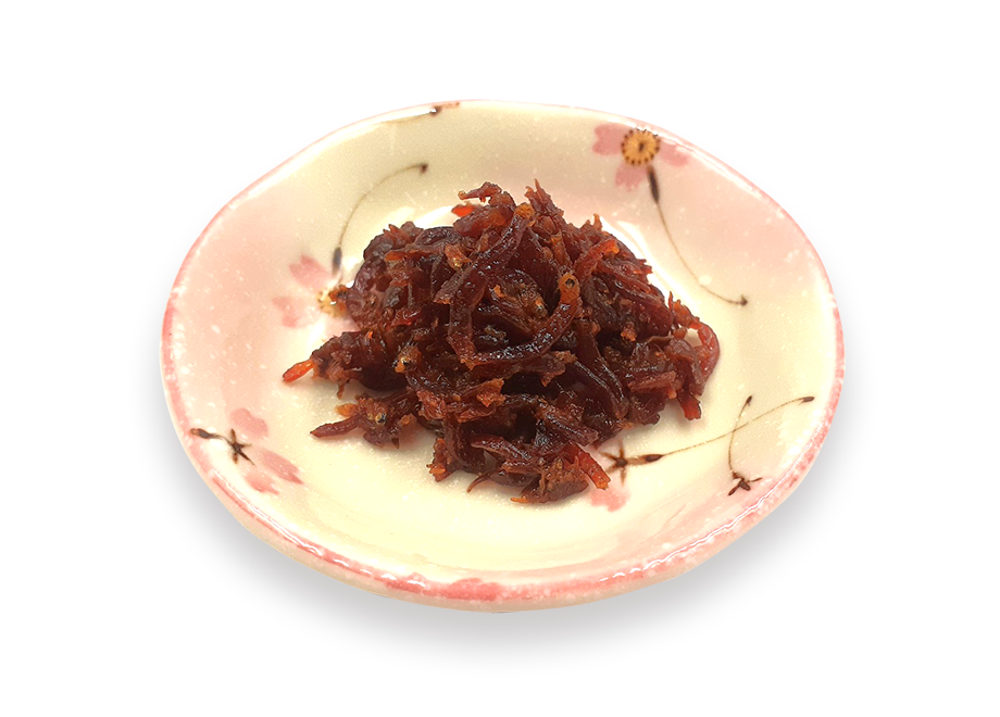 伊勢湾などで採れたちりめんをじっくり柔らかく煮込み、まろやかな甘味に仕上げました。お子様からご年配まで食べやすいと人気の味です。