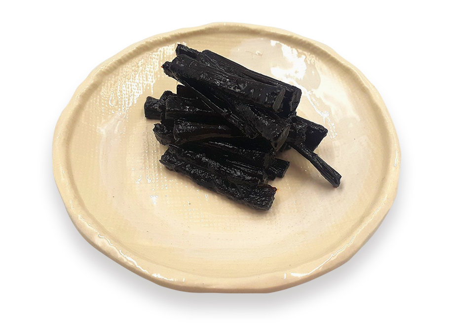 蕗を独自の製法により、柔らかく炊き上げました。コクがありとても美味しいです。天むす・えび天巻きとの相性抜群です。